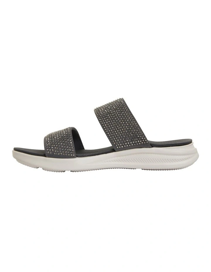 Master low key looks with high impact style wearing NOVATO. The open toe slip on design is crafted with a double foot strap adorned with co-ordinating diamantes, featuring a moulded comfortable foot bed, then rest on a slightly elevated back sole. Slip them on as a timeless accent to a vacation edit.