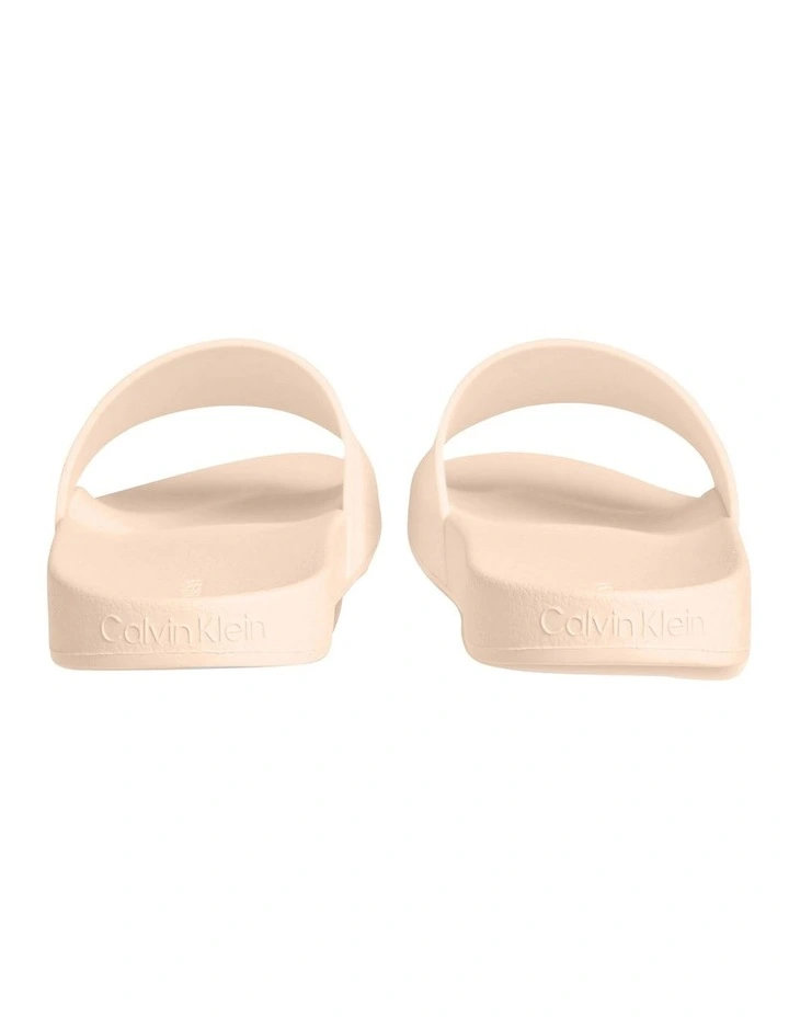 Update your wardrobe with these women’s textured logo pool slides from Calvin Klein.