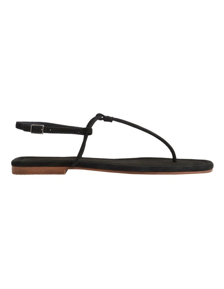 Sleek and stylish, the Ellie Leather Sandal features thin straps, a thong upper and a squared off toe. Pair with our Crop Linen Check Top and Girlfriend Fit Jean.