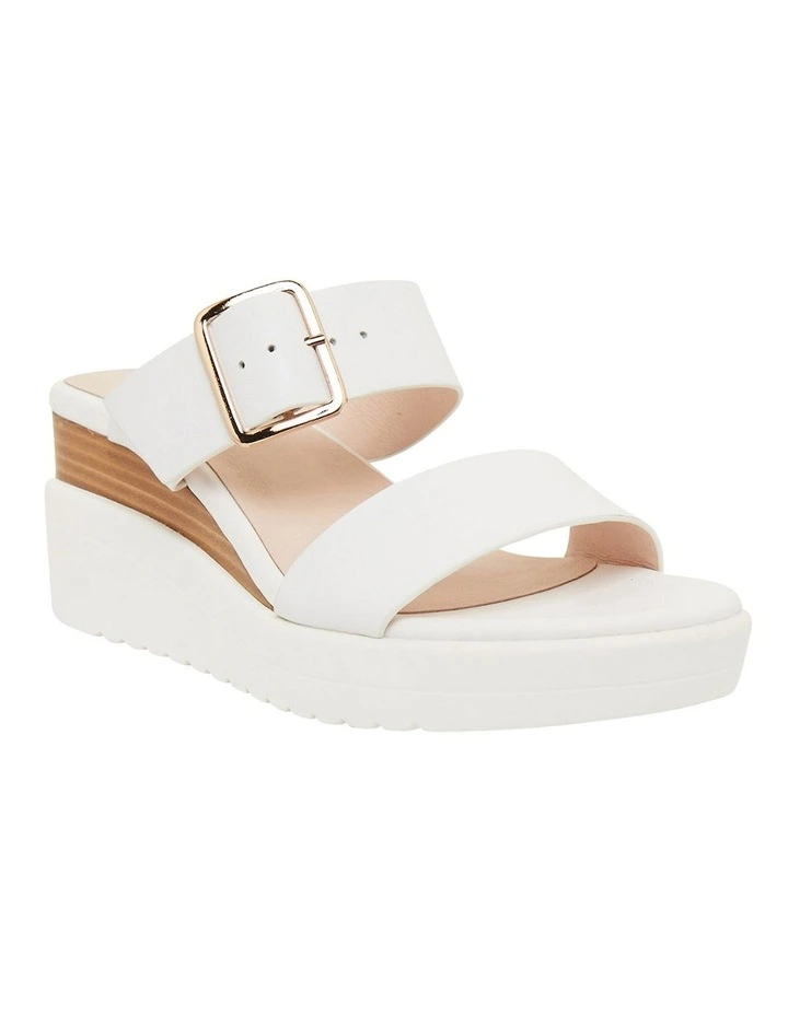 Indulge your summer wardrobe with INDULGE! Featuring soft leather straps that sit across the foot vamp, with one adjustable buckle-fastening strap then set on a stacked wedge heel. Wear them to bring a smart yet playful twist to a variety of warm weather looks.Β