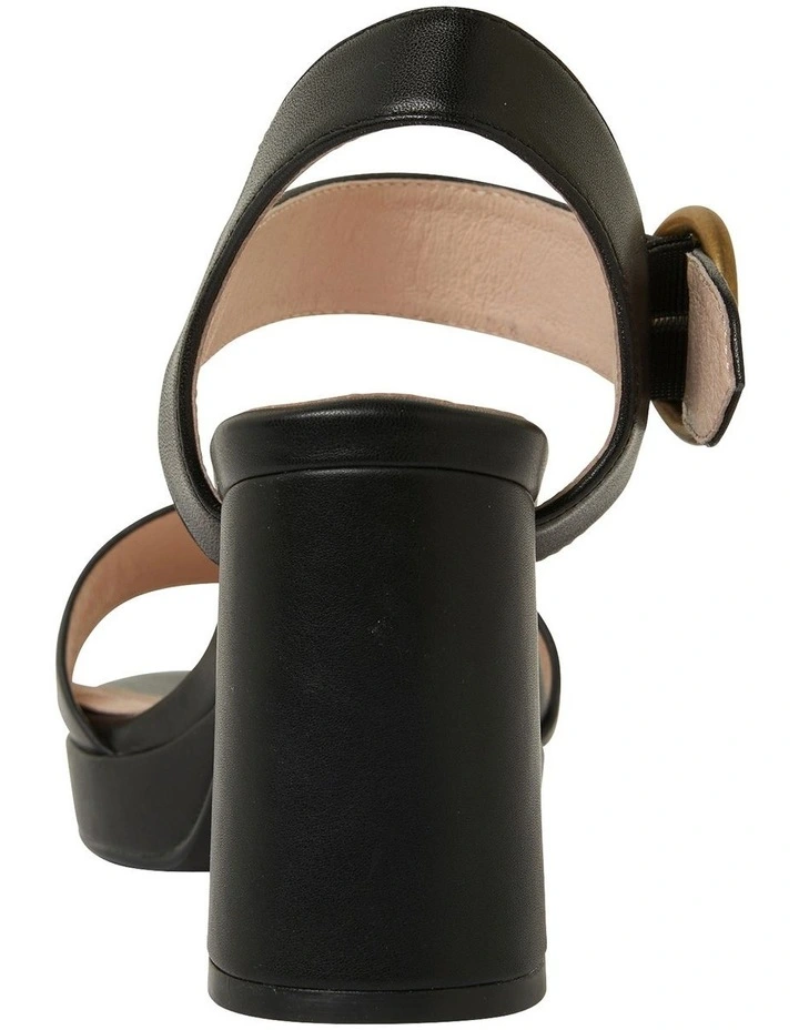 PETRA spotlights a thick block heel, recalling 1970s codes and occasion wear. They’re crafted using a leather toe strap and buckled ankle strap accented with a circular buckle, then set atop a platform sole. Pull focus to the exaggerated heel by pairing them with a line skirts and cropped denim.Β