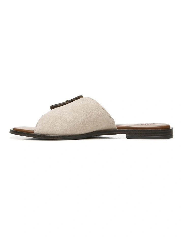 - Chic comfy slide sandal with metallic or tortoise-esque buckle