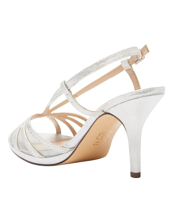 Crystal-encrusted straps and peek-a-boo mesh inserts add eye-catching glamour to this deco-inspired sandal with a throat line that lengthens the leg. BARBARA features a slim platform and is fastened with an adjustable back strap with a buckle closure.