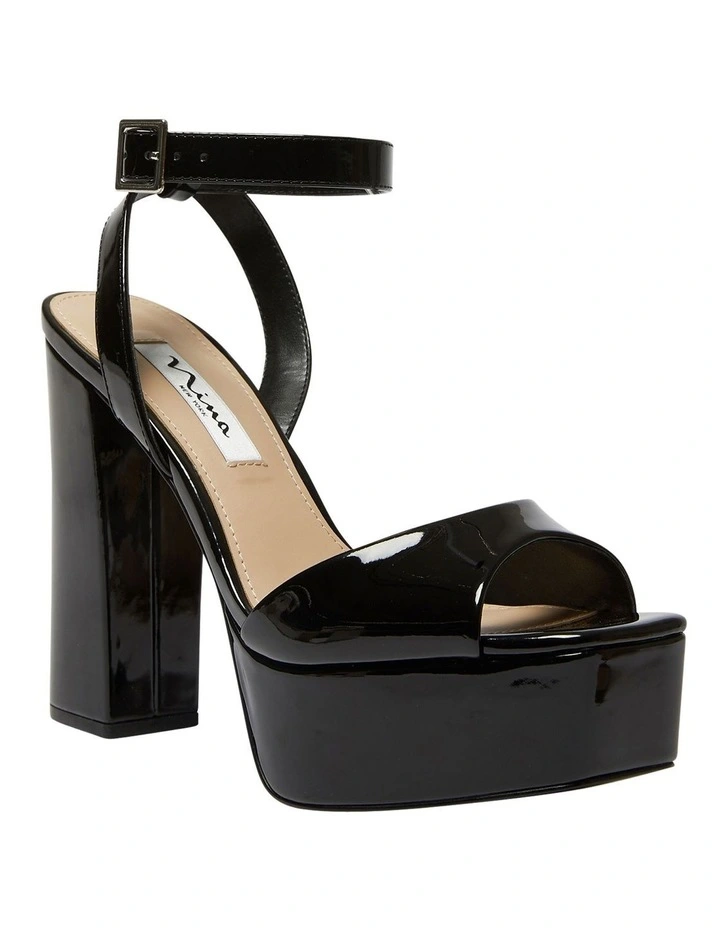 You’ll turn heads in this look-making sandal that elevates any out to fashion icon level. The towering block heel lengthens the leg and the platform adds comfort.