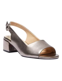 You’ll turn heads in this look-making sandal that elevates any out to fashion icon level. The towering block heel lengthens the leg and the platform adds comfort.