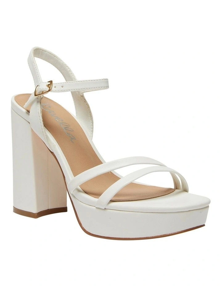 Effortlessly combining elegance and sass, LULU by Ravella is a chic platform heeled sandal. Adorning twin slender straps atop a tubular block heel and sleek platform, it finishes with a silver-toned buckle clasping an adjustable ankle strap. To complete a fierce look, pair yours with a mini dress.Β