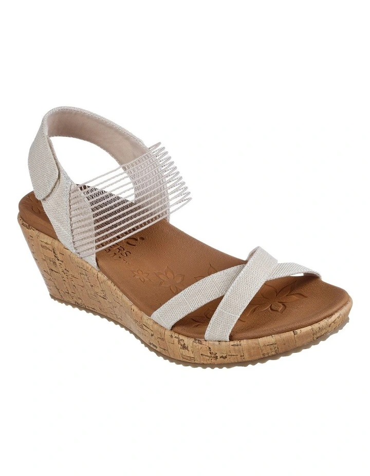 Warm weather calls for the stylish comfort of Skechers Cali Beverlee – Casual Outing. This slingback slide wedge sandal features a sparkle linen upper with a stretch instep panel and a Luxe Foam footbed.