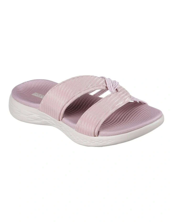 Welcome brighter days with light breezy comfort wearing Skechers On-the-GO 600. This sporty slide sandal features a Stretch Fit mesh upper with contoured Goga Mat footbed and lightweight 5GEN cushioning.