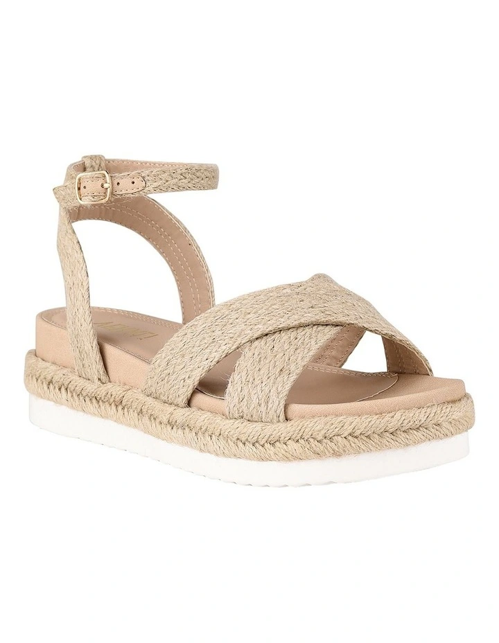 Elevate your looks with DEZZIE sandals with an open cross-over woven natural jute platform with adjustable ankle straps and cushioned sole for the ultimate comfort. Style yours with your favourite summer dress.