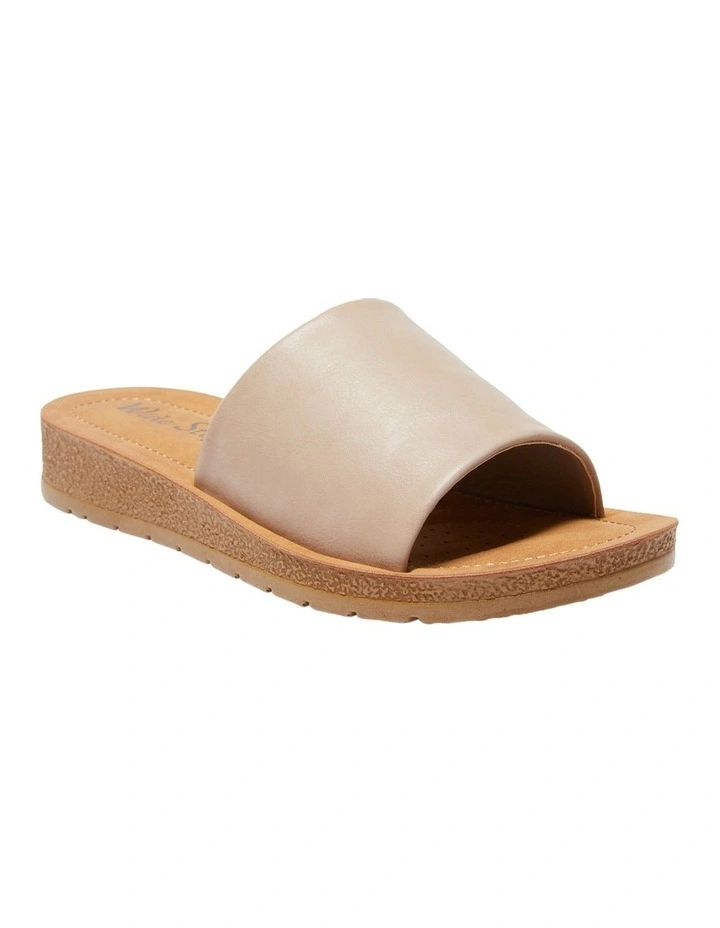 ENID by Wide Steps is a chic sandal embracing simplicity with a modern twist. Featuring a wide front vamp with subtle elasticated attachment, it is decorated with a small stony-surfaced wedge to juxtapose delicate stitching. Slip yours on with ease under endless styling possibilities.Β